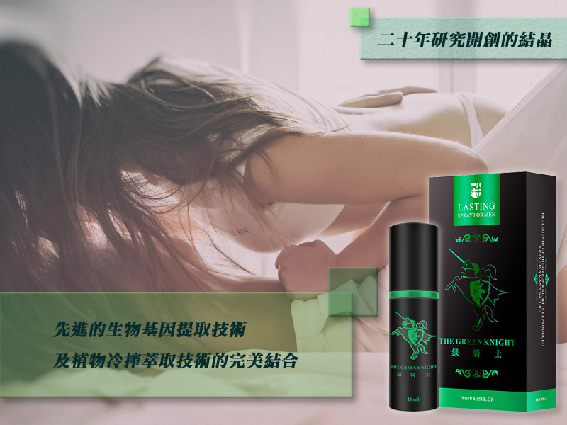 法國綠騎士持久液,針對男性早洩問題而開發的持久產品,性愛時間太短,力不從心草草了事的解決了 讓愛人達不到高潮,綠騎士專為男性設計研發,精選植物精華,吸收快,效果強勁,噴一噴激發性欲,給她愛的時間久一些 也多一些享受,重振男人雄風。